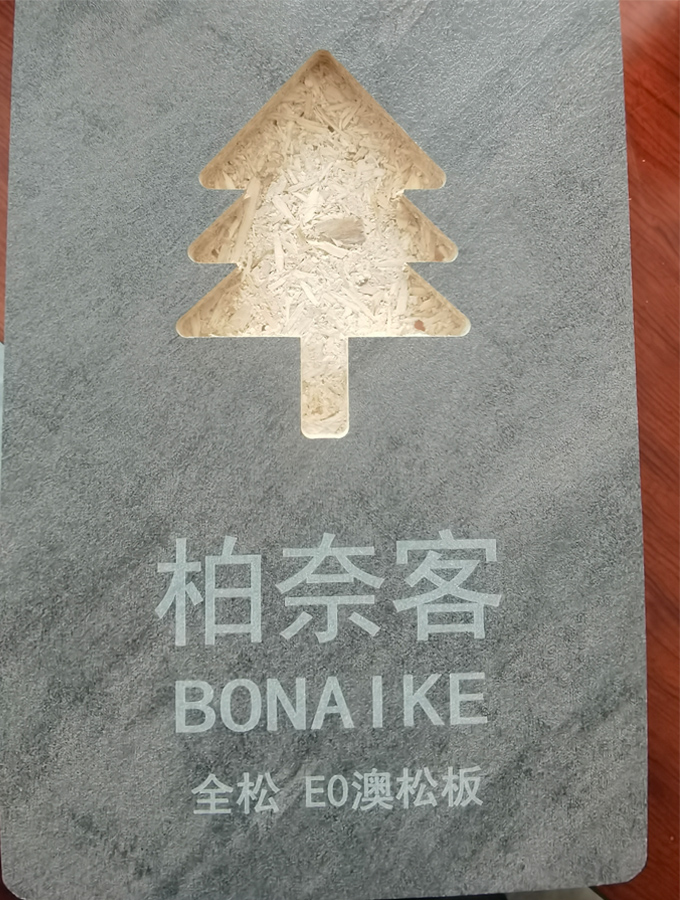 柏奈客E0澳松板面光潔平整,無干花、濕花、鼓泡、透底等現(xiàn)象;刨花形態(tài)標(biāo)準(zhǔn)、一致性好,斷面蜂窩少,鋸切幾乎沒有芯層或鋸末掉落;表層均勻薄壁,切割不崩邊,不費刀。
